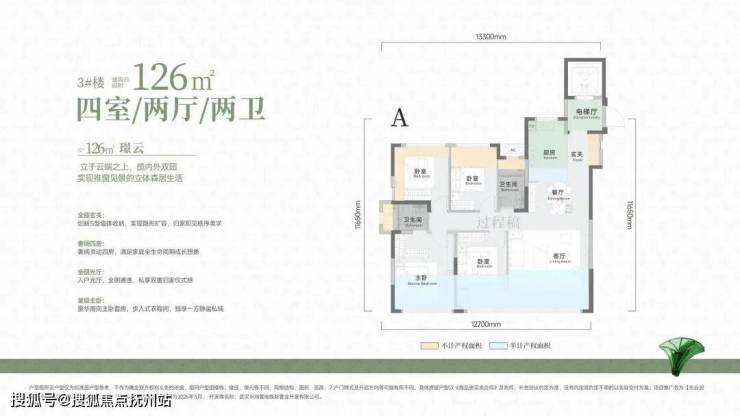 ### 126㎡ | 得房率**102%** | 四房两厅两卫