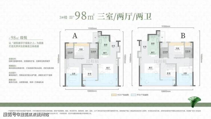 ### 98㎡ | 得房率**102%** | 三房两厅两卫