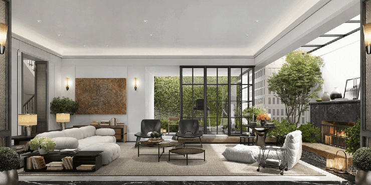 • 大面积落地窗,视线与光线延伸,内外之间阳光与分贝柔和过渡