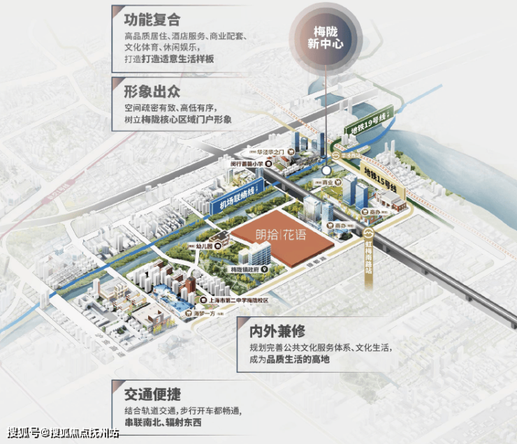 据悉梅陇新中心将以TOD理念打造功能无缝衔接的综合枢纽,沿景洪路两侧打造约120米城市高地,沿春申塘打造滨水地标,优化基础教育和公共服务布局。