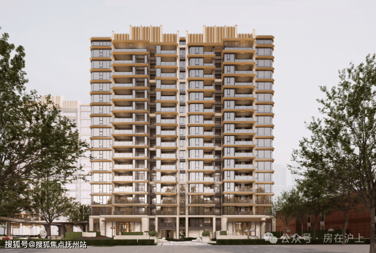 此次住宅项目外立面采用浅色石材、香槟金铝板与LOW-E玻璃的组合,实现四面立面的美学统一。