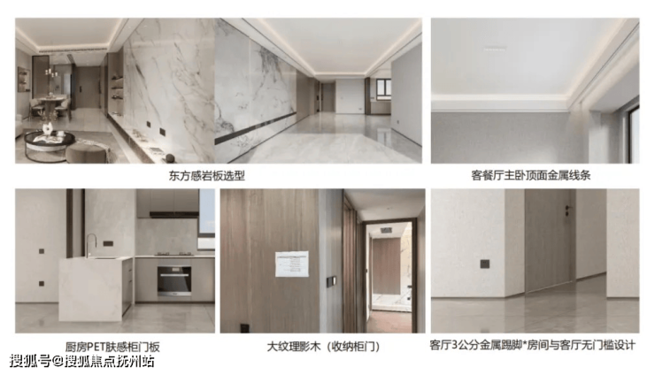 而在硬性标准之上,保利·海上瑧悦还充分融合了东方文化高定细节!比如说,客厅整面交付的大面积岩板背景墙均为东方定制款式,采用的是水墨丹青和徽州印象样式,配色风格凸显东方风雅;