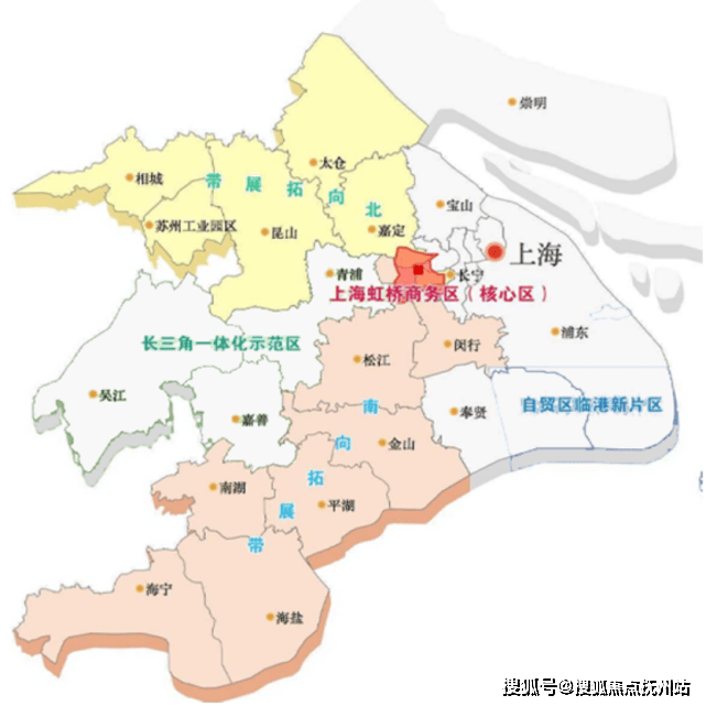 🔺7000平方公里的虹桥国际开放枢纽,呈现一核两带的发展格局