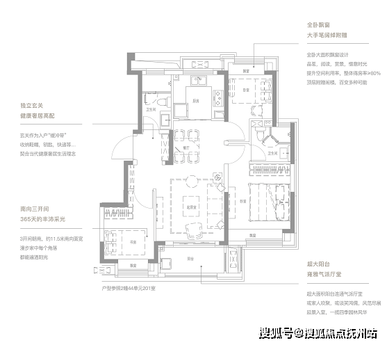 南北双阳台,全卧飘窗