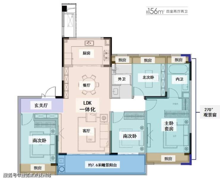 超尺度瞰景阳台,5大飘窗赠送,满足人们对大面宽、大景宽、大尺度生活的追求。主卧套房设计,自带品牌独立卫浴,预留L型步入式衣帽间,双270°多视野景观飘窗,奢适度拉满。