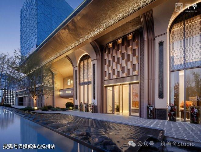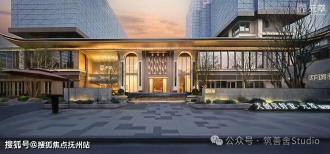 建筑立面以现代公建化手法为基底,巧妙融合金属铝板、玻璃幕墙与天然石材,萃取千年“仪门”及贡院古建筑拱门的经典元素,并融入国际前沿审美中的扎哈曲线立面设计,完美呈现国际风范与东方神韵交织的建筑美学。