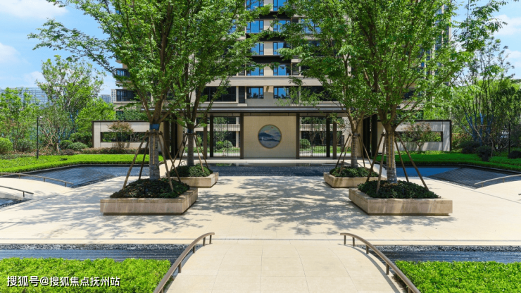 通过景观走廊、层叠跌水、青翠香樟等组团