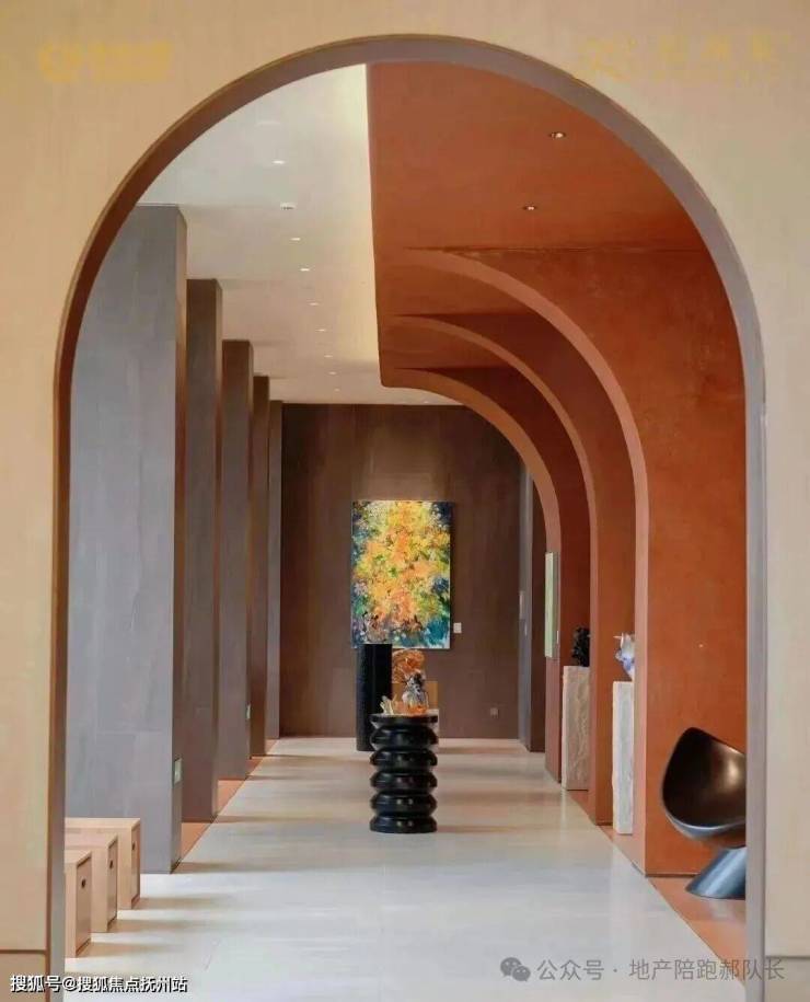 知海棠源于之江“江湖并美”的纯粹气质,精心打造主入口「知·云栖」,其灵感源自西湖十景,却超越简单的形似。以“洄游”作为设计灵魂,采用超过52米的回字形布局,巧妙重构了传统的“四水归堂”空间结构。