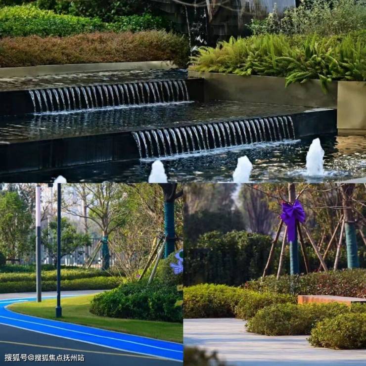 穿过归家的第一重仪式,迎宾水景静静铺展,水声轻缓,倒映天光云影。园林也不再是规划图上的色块,而是盎然的乔木、错落的灌木、柔软的草坪。