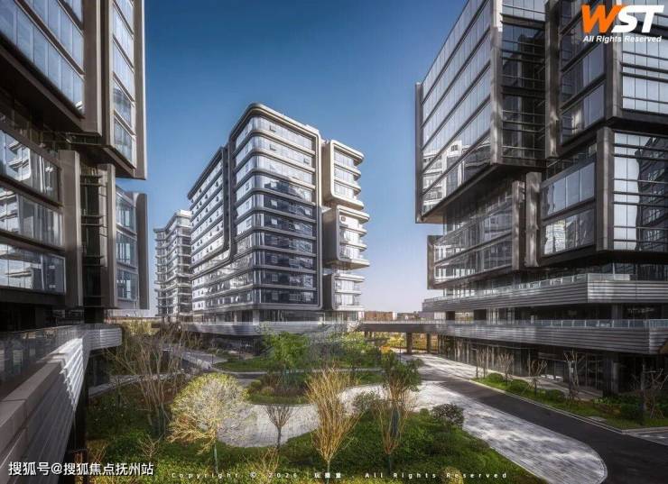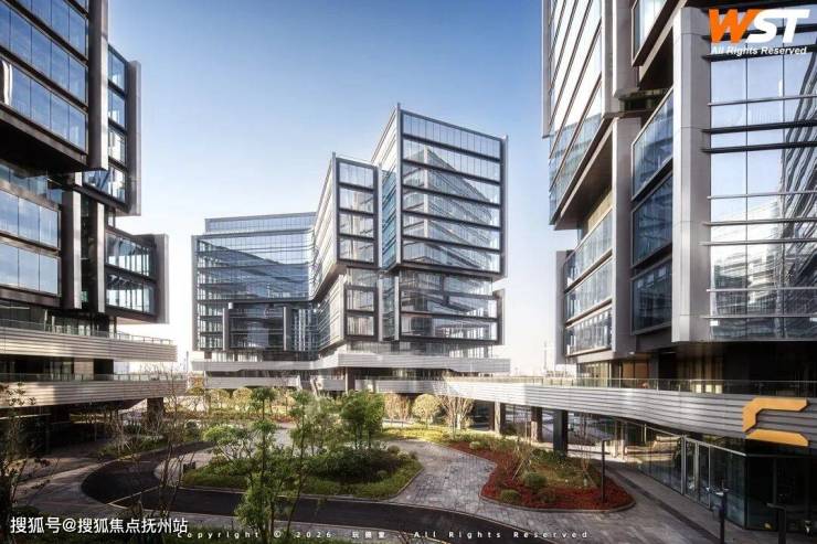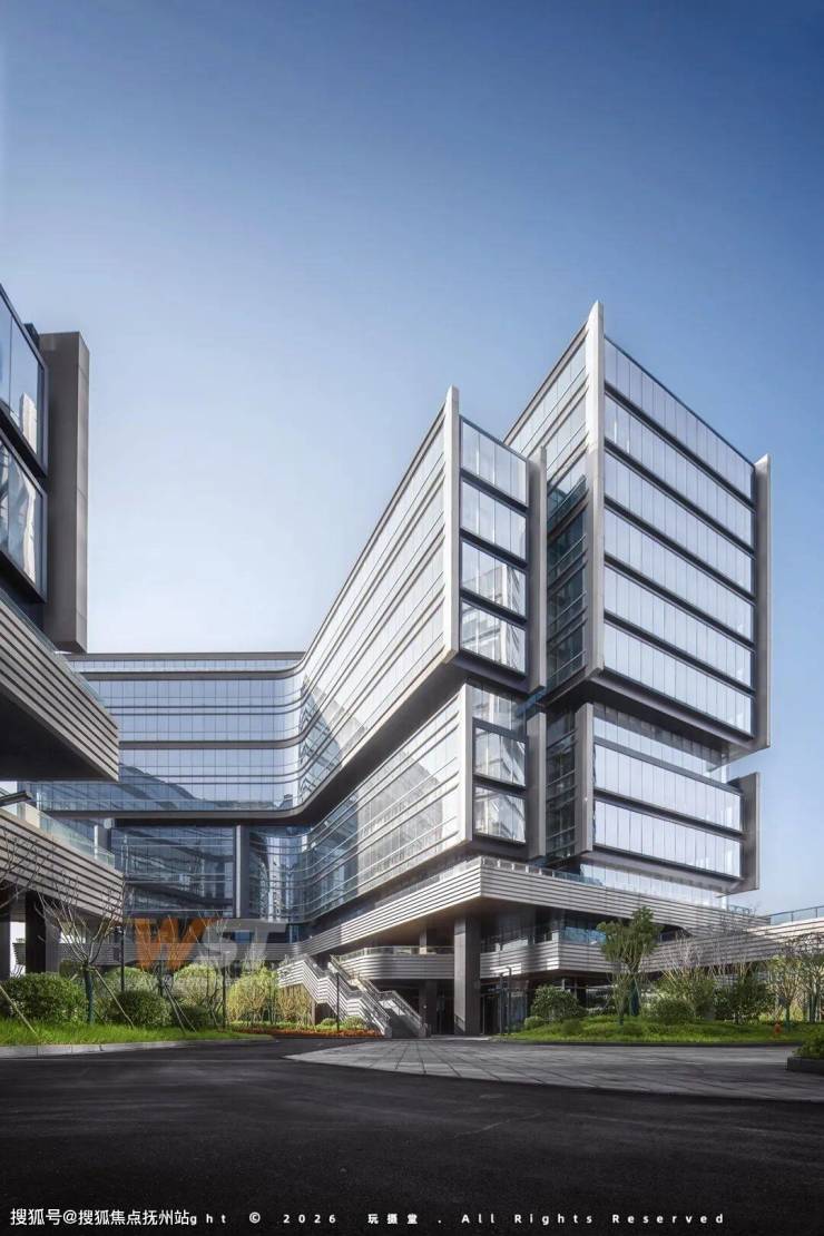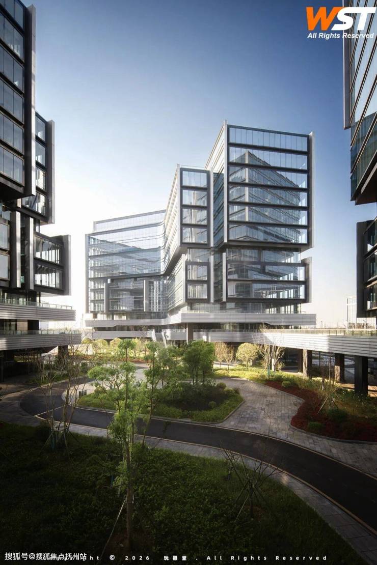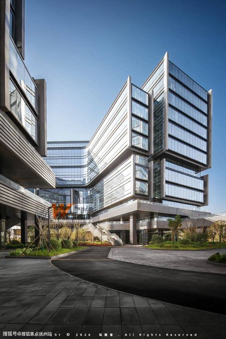 网安软件园建筑群位于径河北岸,由7栋流线造型的建筑错落组成。以信息流为灵感,流畅线条呼应数据传输的动态韵律,Low-E玻璃与铝板装饰在光影中切换层次,围合出两大庭院与景观通廊,让科技感与生态感自然交融。这里不只是30万㎡的产业空间,更是集研发办公、人才公寓、商业配套于一体的“五位一体”生态园区,华为、云从科技等企业已相继入驻,构建起网安产业的协作网络
