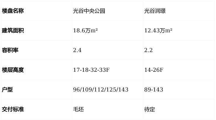 对比隔壁的光谷中央公园,可以发现面积段极为类似,只是往起步户型稍微更刚一点。