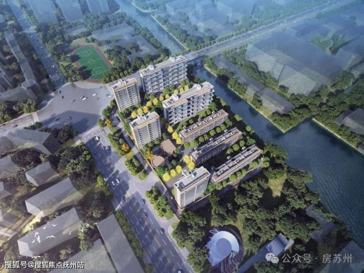 除了内部景观外,项目还借景古塘河,为业主打造约2600㎡水岸公园,含水杉树阵、绿地草坪、400米跑道及健身设施等。