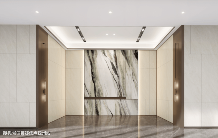 细心打磨高品质精装入户门厅,地面首层入户、电梯厅入户,地下入户的精工空间,石材、铝板等奢装材质,单元门口的壁灯、车库顶部嵌灯带等细节设计,渲染更为精致的归家格调氛围。