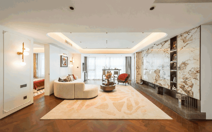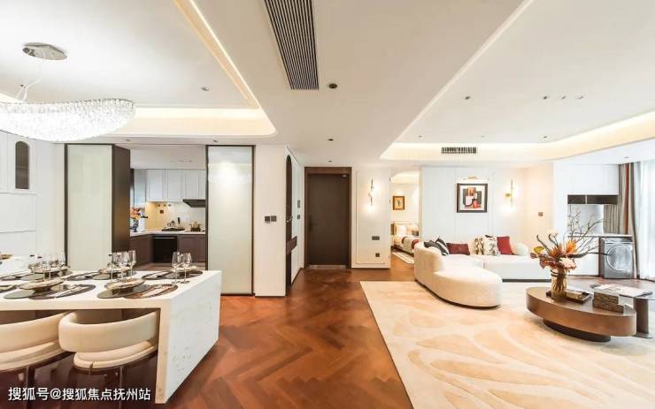 步入约160㎡样板间,首个冲击来自空间的“呼吸感”——四开间朝南的格局下,约15.6米面宽如巨幕将更多风光引入室内。