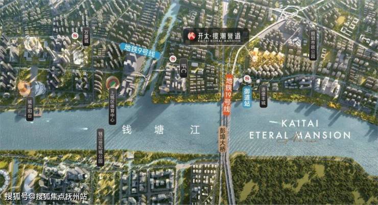 钱江新城二期总部超核之上,紧邻江河汇金融心,距江岸仅约400米,与亚奥板块隔江对望,推窗即可俯瞰壮阔江景。周边商业氛围浓厚,3公里范围内汇聚IFC、万象城、来福士三大商业中心;推窗见绿,市政公园、上城区体育中心、城市阳台江堤步道等构建15分钟步行生态圈;值得一提的是,项目衔接地铁9号线、19号线御道站,直线距离约100米,19号线作为杭州“城市快线”,可快速直达萧山国际机场与火车西站,实现全城乃至全国的高效通达。