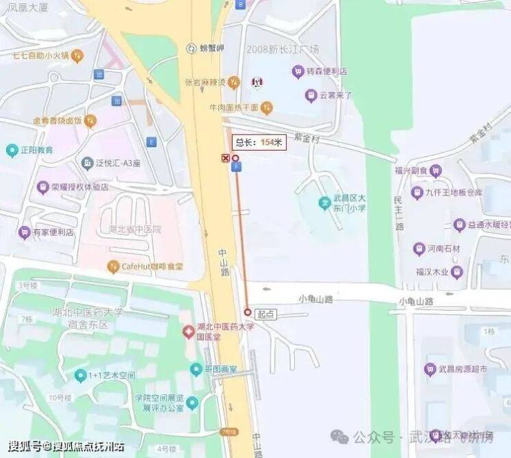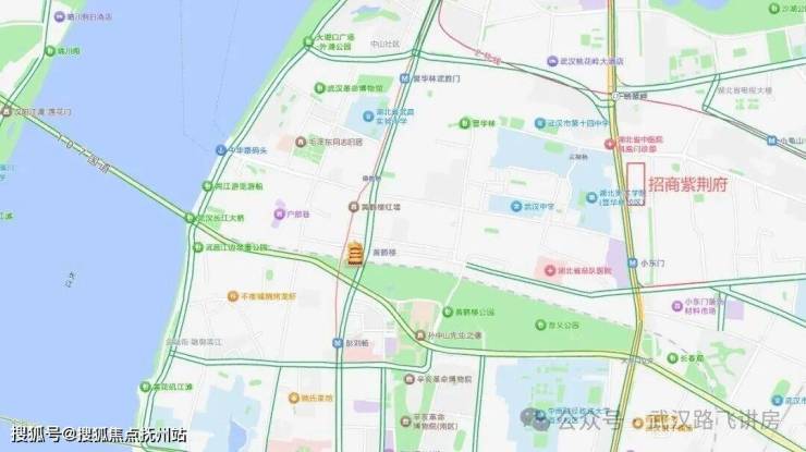 项目位于武昌区中山路与小龟山路交汇处,属于武昌内环。从板块来看,项目属于武昌核心螃蟹岬,沙湖汉街板块直线距离约800米,与中南路直线距离约1.7公里。