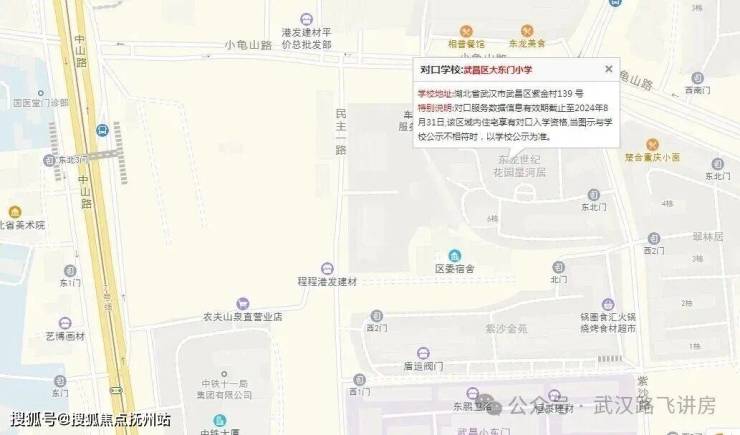 教育:项目规划中包含一所 6 班制幼儿园,可满足业主基础入园需求。根据学区划片,该项目对口的小学为中山路小学紫金分校(其前身为大东门小学),初中则对口武汉市第二十五中。
