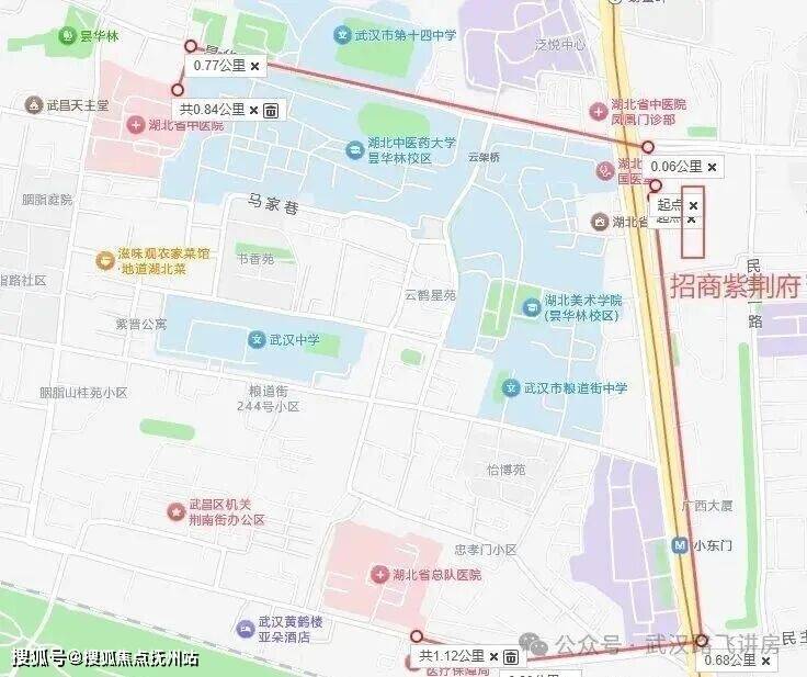 医疗:项目到武警湖北省总队医院(三甲)的步行距离约 1.1 公里,到湖北省中医院花园山院区(三甲)步行仅需走 840 米左右,就医还算便捷。