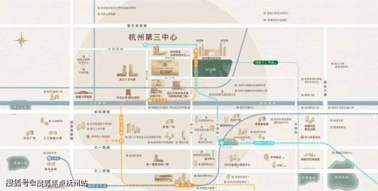 第三中心属于杭州城西科创大走廊中轴,阿里、菜鸟、 VIVO全球AI研发中心(在建),OPPO全球研发总部(在建),字节跳动(在建),浙大校友企业总部经济园(在建),杭州资本科创中心(在建),浙江人才大厦(在建),超重力实验室(在建)等大型产业云集。