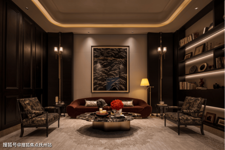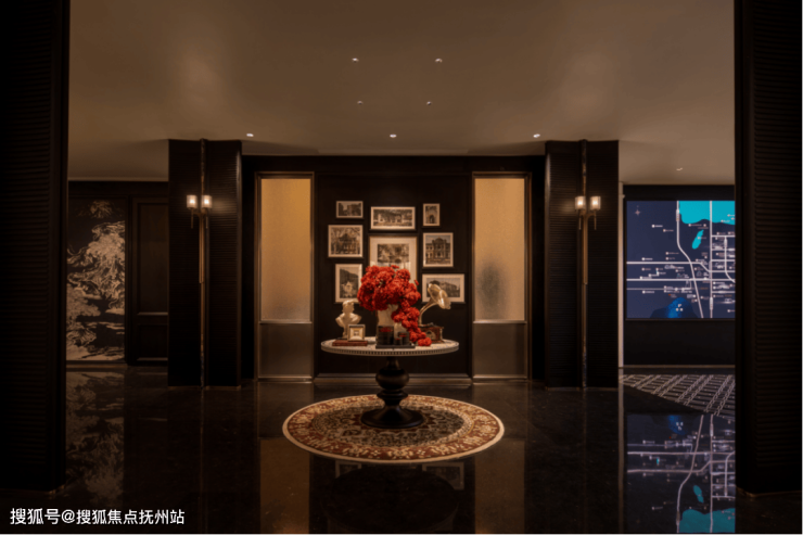 售楼处室内以“黑白海派法式”为基调,紧扣“摩登湖山诗”理念: