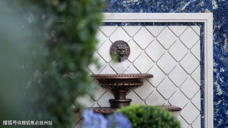 以意式美学植物与对称水景营造秩序感,丹桂树阵融汇东方写意,蓝翡翠奢石串联水系轴线。