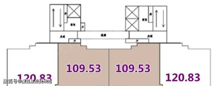 I户型建面约109.53平,三室两厅两卫:此户型位于中间户,连廊结构,三开间朝南,也是目前市场上非常流行的中间户。