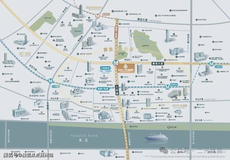 项目位于江岸区三阳路与解放大道交汇处东侧,属于内环的三阳路板块。