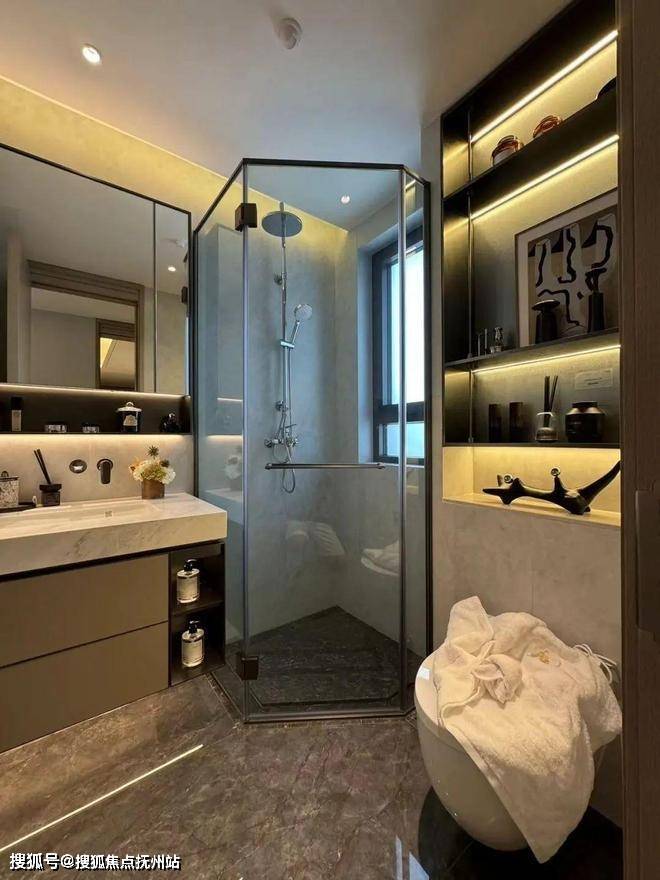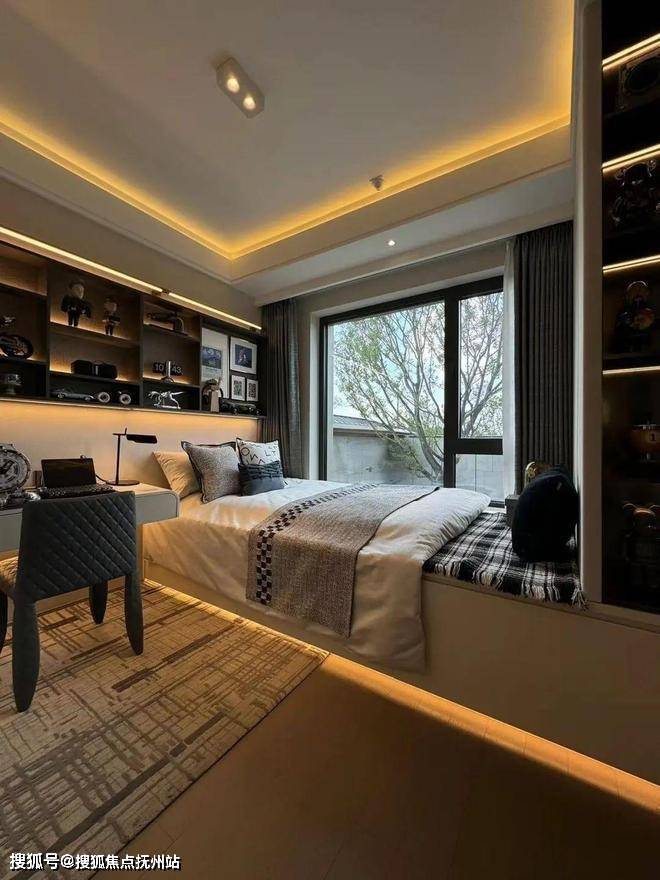 而人行线路则由星级酒店式的入户大堂进入,接着便是6S会所环绕的下沉式水景庭院,约7米高磅礴大气的水景墙配合乌桕林和原石、浮桥交错的地面水景,若是傍晚归家,还能欣赏倒映在水中的点点星光,可谓满满的奢雅意境和尊贵仪式感!