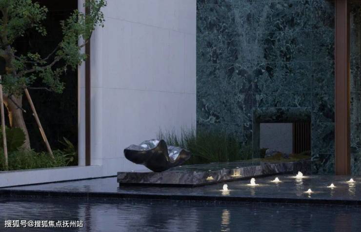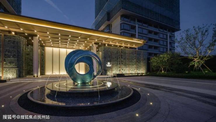 而雕塑与水景的精致融入,则如同一抹温柔的清风,轻轻拂过硬朗的大门,为这份震撼增添了一抹细腻与雅致,让业主在归家的第一步便能感受到项目独有的温馨与关怀。