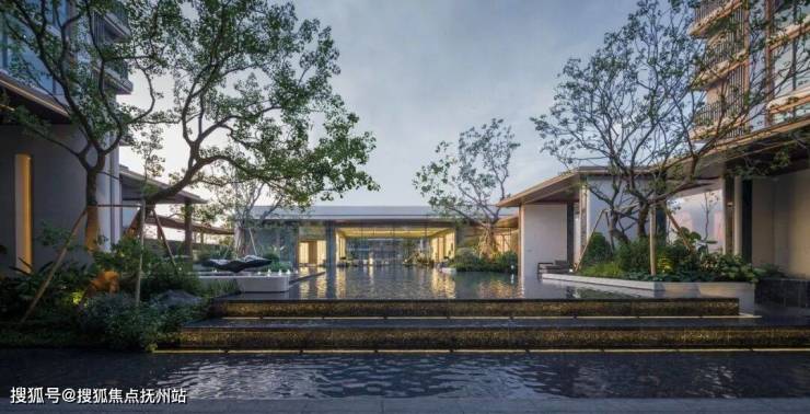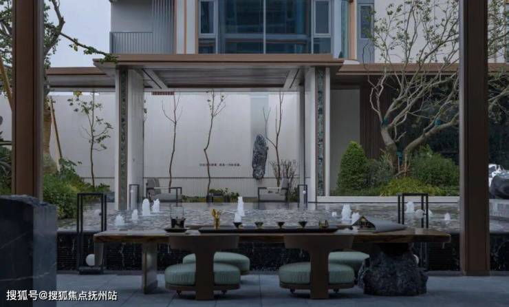 前场水院,作为项目中的一片精致绿洲,其设计旨在传递一种高级、隐奢的生活态度。设计团队将空间巧妙地一分为二,东侧设计为通行区域,流畅而便捷;西侧则精心打造为停留空间,静谧而雅致。