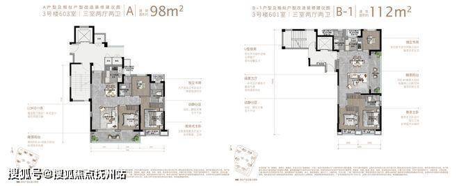 而建面约98㎡与112㎡的户型,同样也可圈可点。