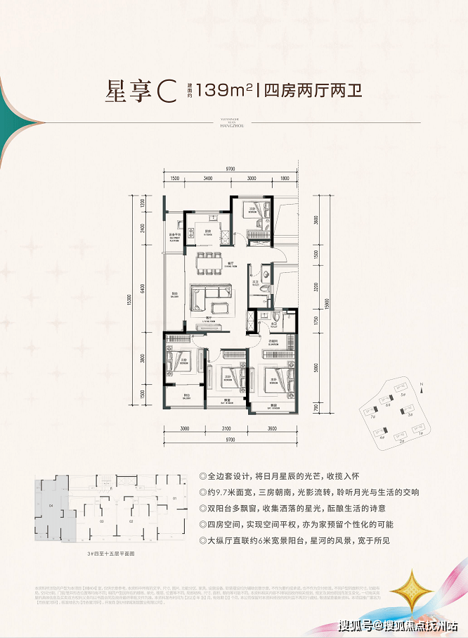 建面 约114㎡四房两卫户型,主打三代同堂生活理想;建面 约139㎡四房两卫户型,适合改善型家庭入手居住,空间尺度感阔绰。