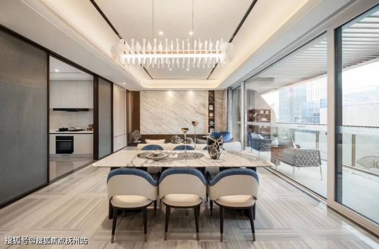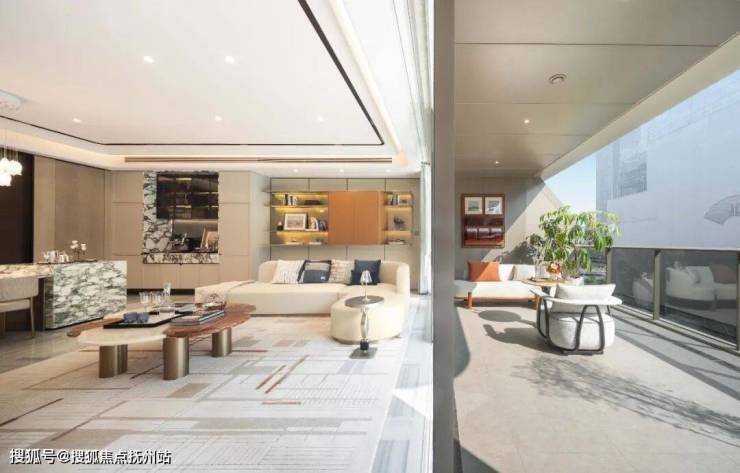 建面约256㎡中叠,则以“空中院境”重新定义城市栖居。其精巧之处在于,将阳台与露台无缝衔接,形成一处悬浮于城市上方的通透绿洲。于此,视野不再受框限,晨光、云影、晚霞皆成为家中流动的壁画。设计在开放与私密之间取得精妙平衡,既保障了家庭生活的静谧性,又赋予了一份“出则繁华、入则宁静”的空中庭院惬意,实现了垂直维度的诗意栖居。