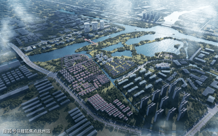 在规划布局上,项目采用北高南低的天赋层次——北侧布置9层生态平墅,俯瞰公园盛景;南侧沿河排布一线湖苑别墅,私享静谧河岸。社区建筑与公园景观无界融合,形成北望公园、南临河道的双重景观视野。