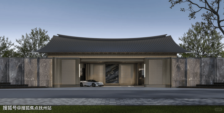 别墅立面于重点部位创新运用“歇山”意象与现代格栅,于细节处雕琢,彰显建筑的高级感与独特身份。浅色外立面与玻璃栏板的组合,呈现出轻盈通透的视觉效果。这种将现代建筑语言与东方美学意境相融合的设计,使鸿湖上成为代言苏州吴中的人居标杆。
