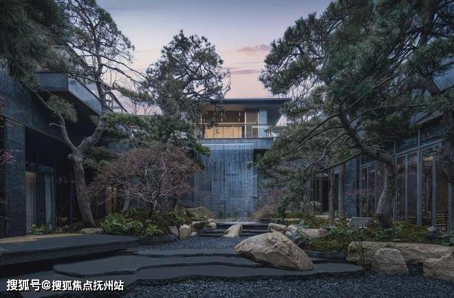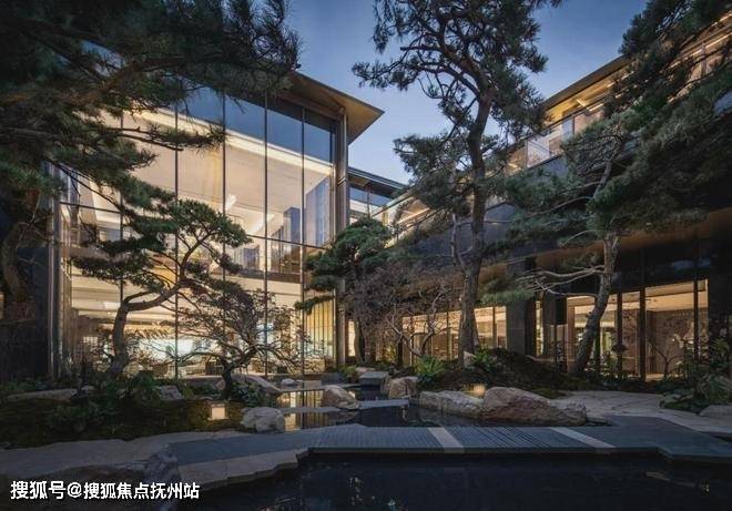 这里每一块柏坡黄原石都是通过人工精挑细选,保留天然质感,自然排布于碧池驳岸,每一棵油松都有超百年的树龄,加起来超千年,并且每一棵树价值不菲,一池、一松、一瀑、一石,营造出清朗明洁的下沉庭院空间。