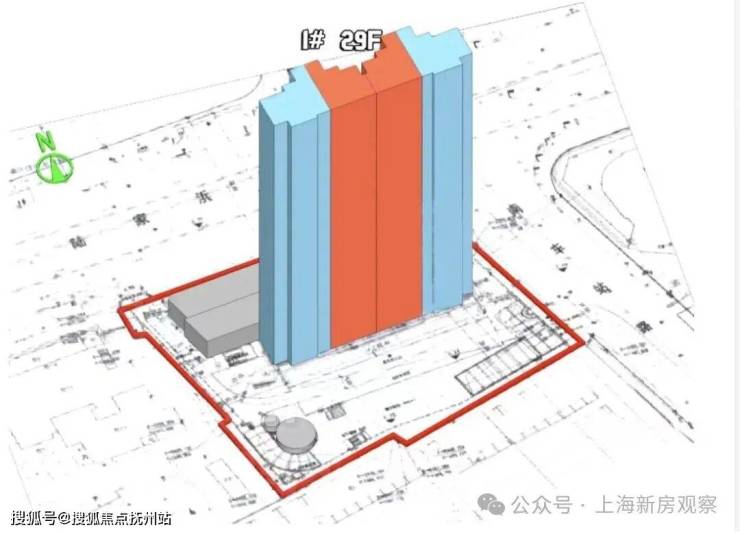 地块东至南车站,南至丽园路规划绿地,西至东方苑,北至陆家浜路。除了住宅之外,还将拟建1栋1F商业+1栋居委会、老年活动室。总建筑面积30517.71平方米,建筑容积率为3.3,绿地率为35%,绿地面积达到2042.6平方米。