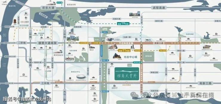 从招商天青府出发,步行约500米就可到地铁19号线新月溪公园站B出口。光谷中心城多数在售项目都远离已有地铁站。