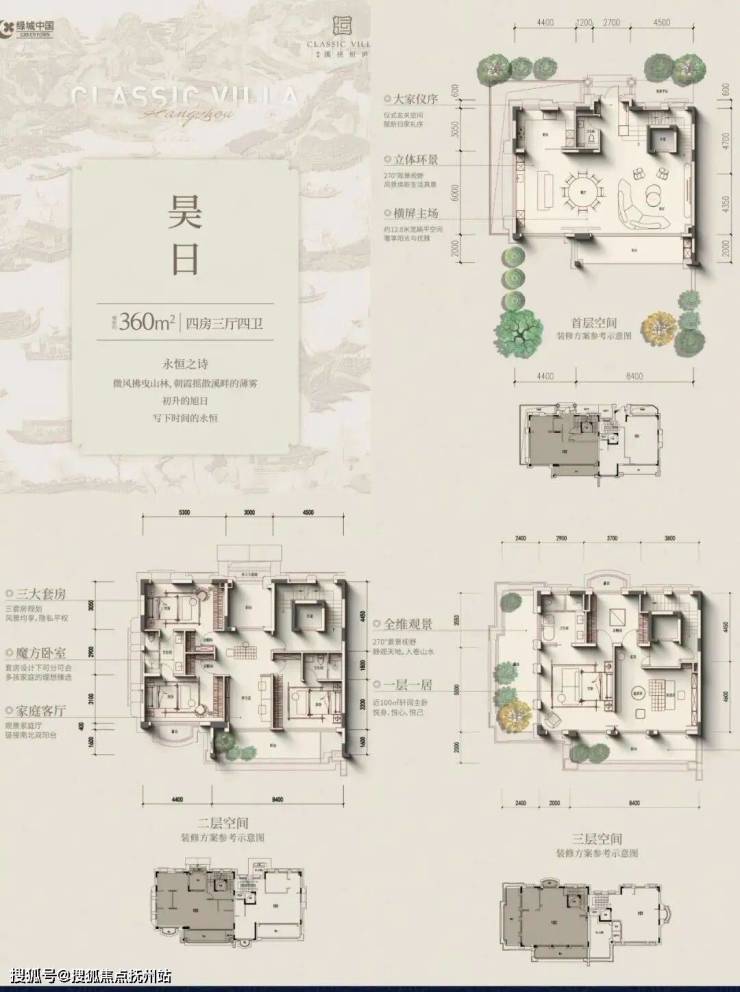 叠排产品遵循“现代形、东方意”内涵,低密产品,最主要追求的就是“有天有地,有私密感”,所以附加值的打造,变得尤其重要。所以,我们先讲的是附加值。建筑面积约235~300㎡四层庐系叠墅,