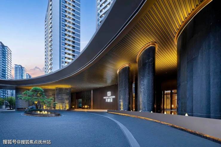 天樾玺的从项目主入口到园区内部,沿着入户动线依次呈现富有张力又充满温度的“三重·两院·一面”的景观秩序与贵重空间。