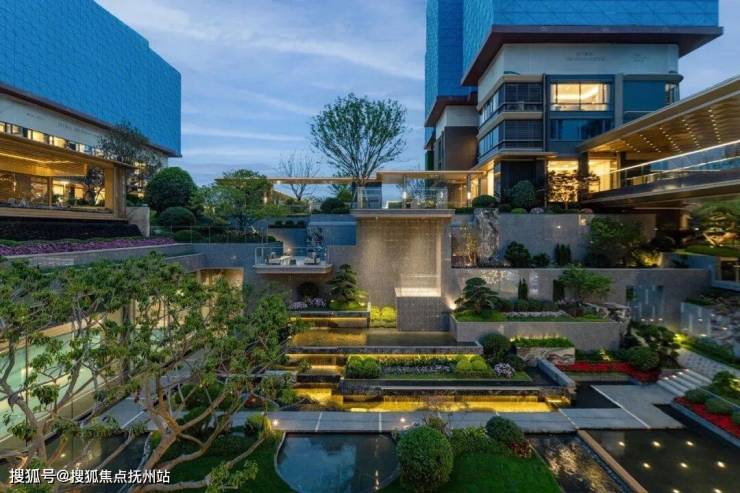 杭州市中心首个全抬板豪宅,项目通过-1层、M层(地面层)、G层(抬升地面层)做了三级立体抬升,把首层住户最高抬升至约12米的高度。