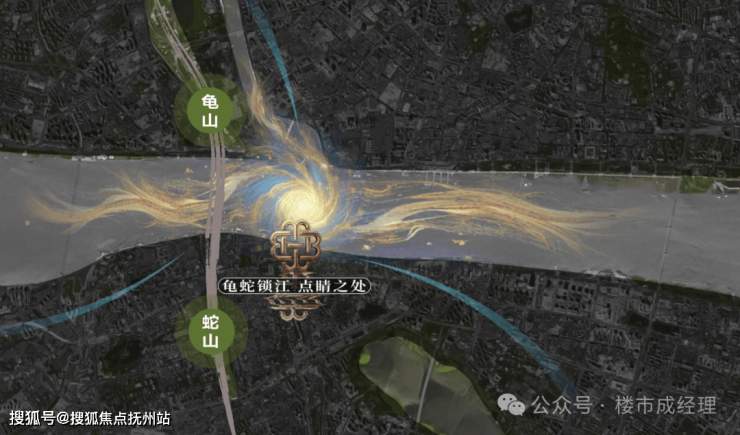 项目踞守蛇山脚下,与龟山隔江对望,扼守“龟蛇锁大江”的点睛之处。位处两江四岸汉水回旋之要冲,成就藏风纳气之所;拥揽长江岸边山环水抱、玉带环腰之势,乃自然天成的兴旺之地厚泽之壤。
