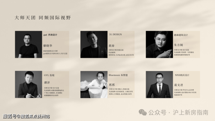 聚集享誉业界的团队——gad杰地设计、31.DESIGN、GVL怡境、德森建筑设计、NNS纳沃设计、Bluemoon布鲁盟