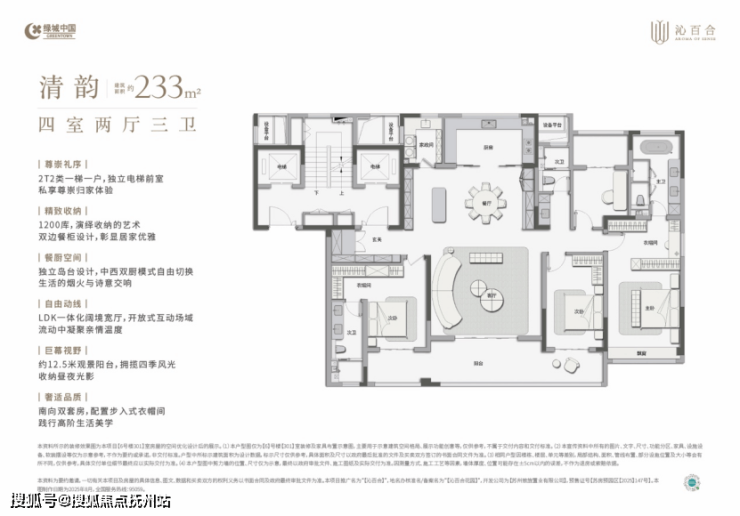 作为苏州年度级低密作品,沁百合将再度呈现绿城在低密领域的非凡创造力。以1.8低密容积率,匠心打造建面约154-233㎡纯洋房。