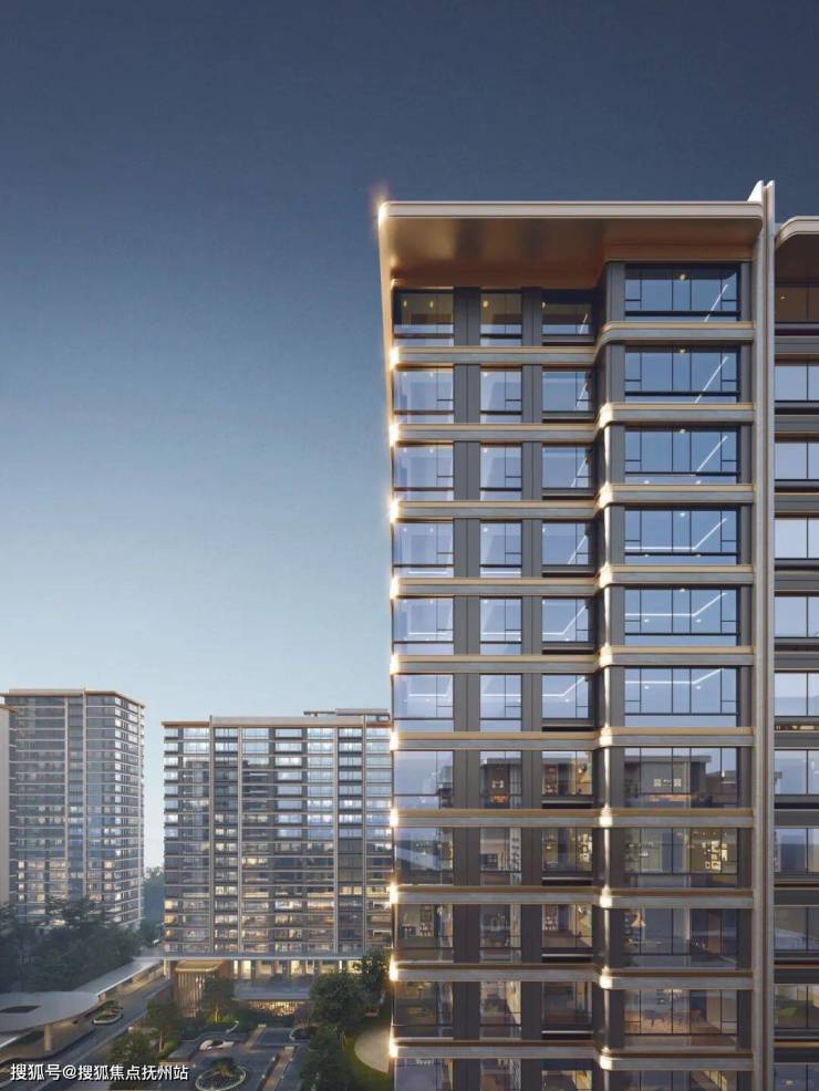 建筑立面选材兼顾未来感与品质感,采用Low-E中空玻璃保障通透视野,搭配贝金米黄铝板,以现代工艺勾勒简洁利落的线条;局部嵌入深灰色金属格栅与科技感灯带,既强化层次,又呼应未来科技城的科创基因,实现“未来形态,质感表达”。