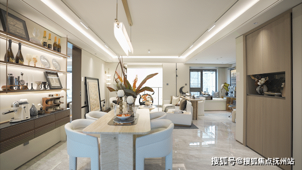 餐厅空间相当阔绰,可放置四人桌或六人桌,尺度之大在400万左右产品中非常难得一见。