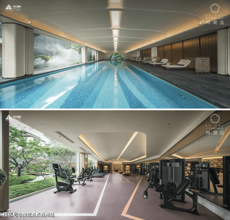 还有一座被命名为「湖山间」的下沉式CLUB,营造丰富的功能空间:恒温泳池、健身房、瑜伽室,还有壁球室、茶室、童玩区……这般媲美星级酒店的配置,是鸣湖里关于高阶圈层的生活方式表达。