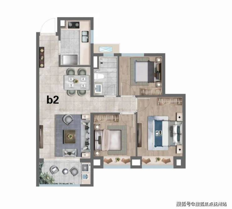 该户型功能性非常强,非常适合三口之家居住。