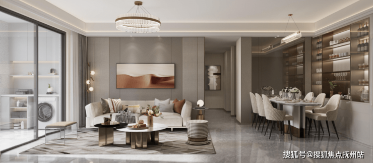 客餐厅相连,客厅南连宽景阳台,再加上室内3米层高,整个空间的开阔感铺展开来;