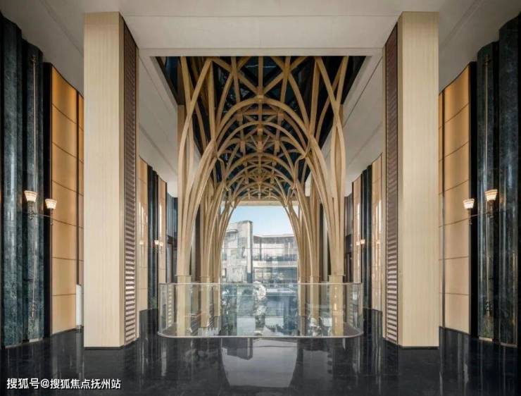 紧接着,步入第二境的舒卷归堂,约13米的挑高,尽显大气磅礴,富有东方意蕴的穹顶设计,让整个空间瞬间有了引人瞩目的焦点。